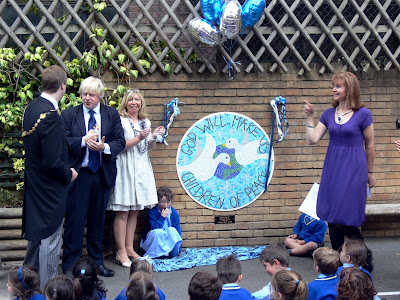 For overseas readers, the man with the blond hair is Boris Johnson, Mayor of London. The one dressed as a head waiter with the horse-brasses round his neck is the Mayor of Westminster (which is part of London). Boris explained the reason for two mayors is that the other chap is the Day Mayor leaving the audience to guess what he is. He also said he did so badly at prep school that he has spent his life ever since making up for it with an obscene lust for power.