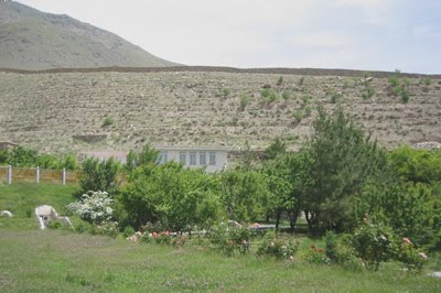 Muslem pointing up to the mountains where his camp was during the Soviet occupation. Massoud’s shrine is just behind them. Iranian designed and built, it is ghastly which is why I didn’t take a pic.